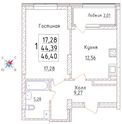 Продается однокомнатная квартира в строящемся доме в ЖК Воскресенский по адресу: г. Уфа, ул. А. Рехмукова 7/1 стр. Этаж 16 из 24. Материал стен: кирпич+монолит. Общая площадь 46.4 кв. м., жилая 17.28 кв.м., кухня 12.56 кв. м. Из просторного холла площадью 9,27 кв м двери в комнату, кухню, санузел. Есть ниша для гардеробной. Санузел площадью 5,28 кв. м. совмещен, кухня и комната изолированы, выход на лоджию из кухни.Отделка получистовая.