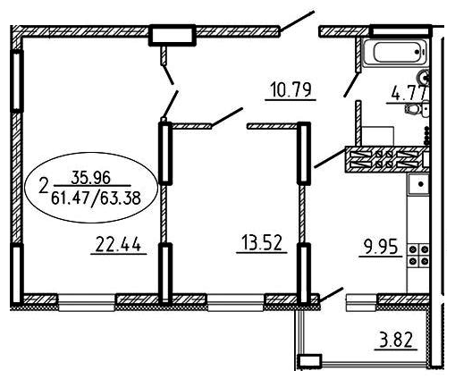 | Количество комнат: | 2 |