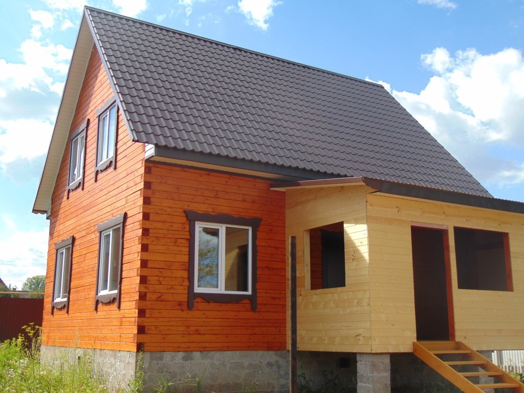 Внешне дом обработан защитно-декоративным составом.