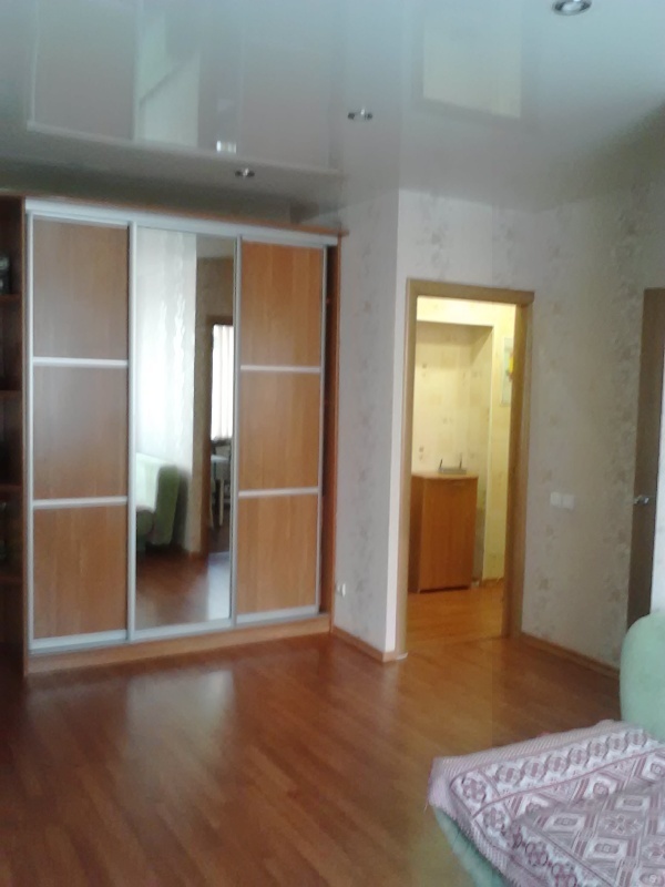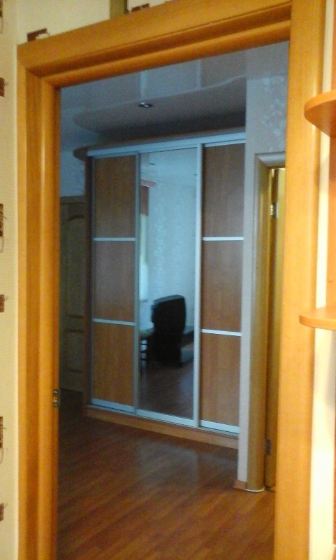 Состояние отличное: пластиковые стеклопакеты, м/к двери из натурального шпона, в комнате натяжной потолок с точечными светильниками, две входных двери: пластиковая и металлическая. Квартира аккуратная, ухоженная: в ванной комнате кафель, на полу керамическая плитка, акриловая ванна, новая сантехника; по всей квартире на полу ламинат 33 класса, на стенах - качественные обои, кондиционер. Встроенная кухня с вытяжкой, встроенный шкаф-купе «Командор». Вместительная гардеробная.
