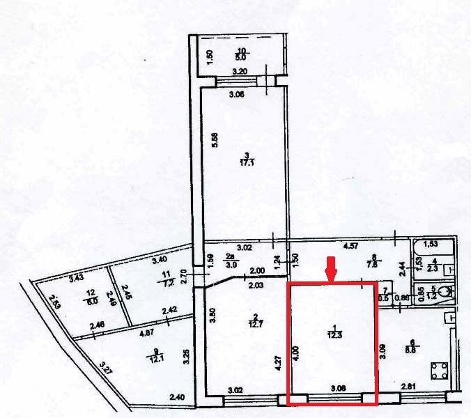 Продается комната 12,3 кв.м в трехкомнатной квартире общей площадью 88,1 кв. м в Калининском районе города Уфа по улице Мушникова, дом 9 (мкр. ИНОРС).