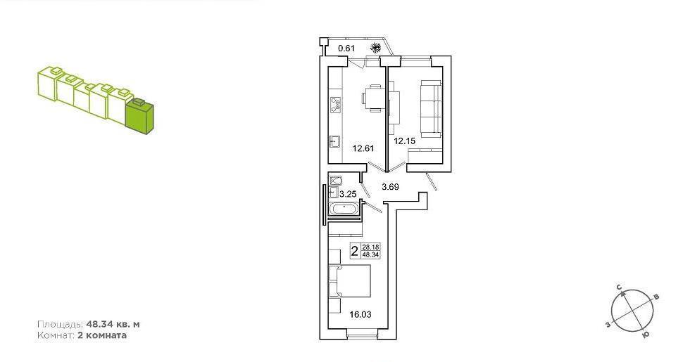 Продается двухкомнатная квартира в Уфе в строящемся жилом комплексе бизнес-класса «Зеленая роща» по ул. Большая Московская 5 б (в квартале ул. Менделеева, Бехтерева, Сун-ят-сена). 4 этаж 11-ти этажного дома из керамического кирпича (не монолит, есть выбор этажа). Площадь 48,34/28,18/12,61 кв. м., совмещенный санузел, лоджия. Есть квартиры площадью 54,2, 55,67 и 58,56 кв.м. Высота помещений 2,70 м.Евроотделка включает: обои, ламинат либо линолеум, плитка в санузле, натяжной потолок, межкомнатные двери, сантехника: ванна, раковина, унитаз; входная металлическая дверь, розетки, выключатели, энергосберегающие пластиковые окна, застекленная лоджия. Первый этап строительства уже начался, сдача - 4 кв. 2018 г. Договор долевого участия с регистрацией в регпалате по ФЗ-214. Надежный застройщик, который ведет строительство нескольких крупных жилых комплексов. Семейный жилой комплекс «Зеленая роща» — это передовые инженерные и архитектурные решения, придомовая территория, созданная для спорта и семейного отдыха, безопасность и комфорт высочайшего уровня, присущие домам «бизнес-класса». Квартал расположен в историческом районе с развитой инфраструктурой, парками и скверами, а также торговыми и развлекательными центрами, фитнес-клубами, кафе и ресторанами, школами, детскими садами и другими неотъемлемыми составляющими активной городской жизни.Жилой комплекс будет построен в районе улицы Сун-Ят-Сена и продолжения улицы Айская. Мкр. «Старая Уфа» — любимый уфимцами район с богатой историей и сложившейся насыщенной инфраструктурой.Рядом ТРК «Мегаполис», ТК «Аркаим», фитнес-клуб «Менделееф», супермаркет Матрица, Лента, Ашан, Аксаковская гимназия № 11, школа № 142. До центра города 10 минут.