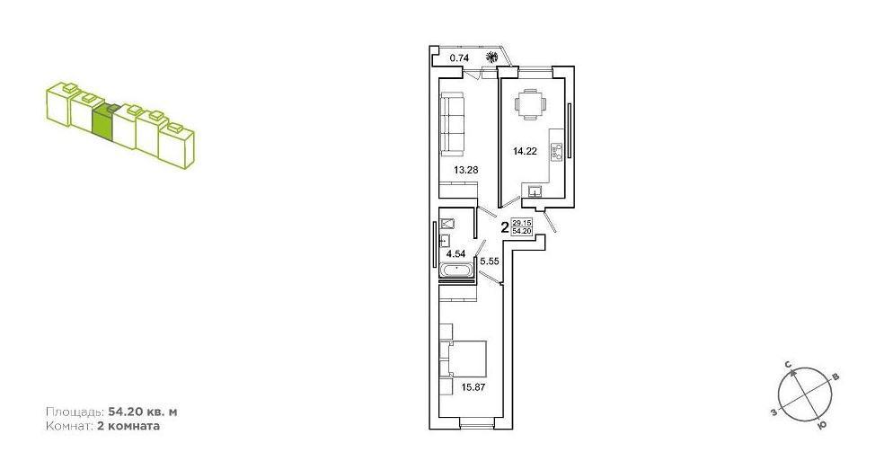 Продается двухкомнатная квартира в Уфе в строящемся жилом комплексе бизнес-класса «Зеленая роща» по ул. Большая Московская 5 б (в квартале ул. Менделеева, Бехтерева, Сун-ят-сена). 6 этаж 11-ти этажного дома из керамического кирпича (не монолит, есть выбор этажа). Площадь 54,2/29,15/14,22 кв. м., совмещенный санузел, лоджия. Есть квартиры площадью 48,34, 55,67, 58,56 кв.м. Высота помещений 2,70 м.Евроотделка включает: обои, ламинат либо линолеум, плитка в санузле, натяжной потолок, межкомнатные двери, сантехника: ванна, раковина, унитаз; входная металлическая дверь, розетки, выключатели, энергосберегающие пластиковые окна, застекленная лоджия. Первый этап строительства уже начался, сдача - 4 кв. 2018 г. Договор долевого участия с регистрацией в регпалате по ФЗ-214. Надежный застройщик, который ведет строительство нескольких крупных жилых комплексов. Семейный жилой комплекс «Зеленая роща» — это передовые инженерные и архитектурные решения, придомовая территория, созданная для спорта и семейного отдыха, безопасность и комфорт высочайшего уровня, присущие домам «бизнес-класса». Квартал расположен в историческом районе с развитой инфраструктурой, парками и скверами, а также торговыми и развлекательными центрами, фитнес-клубами, кафе и ресторанами, школами, детскими садами и другими неотъемлемыми составляющими активной городской жизни.Жилой комплекс будет построен в районе улицы Сун-Ят-Сена и продолжения улицы Айская. Мкр. «Старая Уфа» — любимый уфимцами район с богатой историей и сложившейся насыщенной инфраструктурой.Рядом ТРК «Мегаполис», ТК «Аркаим», фитнес-клуб «Менделееф», супермаркет Матрица, Лента, Ашан, Аксаковская гимназия № 11, школа № 142. До центра города 10 минут.