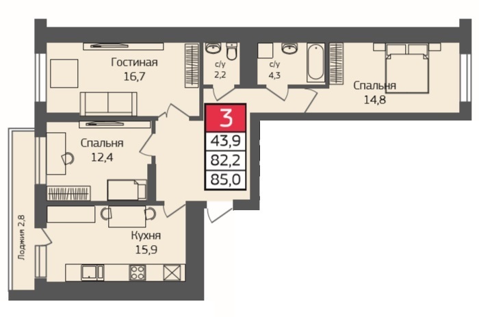 Концепция застройки уникального автономного современного жилого комплекса бизнес-класса предусматривает строительство 9 жилых многоквартирных домов переменной этажности со встроенными объектами бытового обслуживания, торговли и подземными паркингами, оборудованными детскими площадками на придомовой территории.Комфортное и безопасное проживание на территории комплекса обусловлено наличием обширной, продуманной и доступной инфраструктурой района, которая включает в себя общеобразовательную школу на 22 класса, детский сад с бассейном на 110 мест, гостинично-офисный блок с торговым комплексом, отделения банков и т.д.Проект жилого выполнен с учетом всех требований действующих норм и правил по обеспечению условий жизнедеятельности маломобильных групп населения. Для них предусмотрены мероприятия, обеспечивающие безопасное передвижение на улице и беспрепятственный доступ к жилому дому, а также обеспечены места хранения автотранспорта.Проектом предусматривается комплексное благоустройство участка и прилегающей территории с устройством проездов и автопарковок для общественных помещений и гостевых автостоянок для жилых домов.Квартира общей площадью 85. Кухня 15.9, Гостиная 16.7, Спальня 12.4 и вторая спальня 14.8, 2 С/у 4.3 и 2.2 совмещенный. Лоджия. Квартира находится на 12 этаже. Выбор по этажам есть. Ипотека есть. |