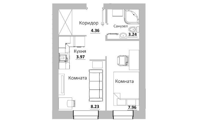 Площадь кухни: 3.97 м²