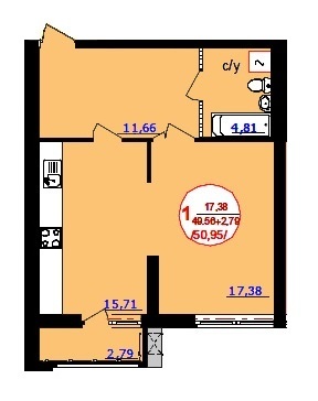 | Площадь жилая: | 17.38 м² |
