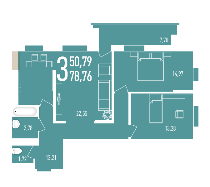 Продается трехкомнатная квартира в географическом центре города! В новом строящемся Жилом Комплексе "Art Plaza", площадью 78.76 кв.мПлощадь 78.76/50.79/9.