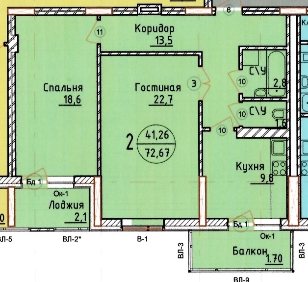 | Площадь жилая: | 41.26 м² |