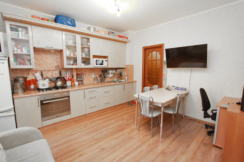 Продается отличная однокомнатная квартира в Зеленой роще по ул. Загира Исмагилова, д. 8 (мкр. Южный, Кировский район). На 4 этаже 8-этажного кирпичного дома 2006 г.п. Площадь 55,2/20/16 кв. метров. Современная и функциональная планировка, квартира 2-смарт: большая кухня-гостиная площадью 16 кв.м., комната правильной квадратной формы 20 кв.м. с выходом на большую лоджию, просторный совмещенный санузел 6 кв.м. Высота помещений 2,70 м. В квартире сделан евроремонт, недавно переклеивались обои и белили потолок. Ремонт делали для себя, первые хозяева. На полу ламинат, в санузле плитка. Межкомнатные двери из массива дерева. Пластиковые окна с двойным стеклопакетом (отличная тепло- и шумоизолция). Лоджия застеклена пластиковыми стеклопакетами. Окна выходят на юг с видом на красивые закаты, светлая квартира. Стены толстые кирпичные, дом очень теплый.В стоимость квартиры входит:- встроенный кухонный гарнитур с техникой: духовой шкаф и вытяжка марки Krona, газовая варочная поверхность Arisron, раковина, смеситель. - встроенный шкаф-купе в прихожей;- сантехника, мебель для ванной, смесители;- гардины.Хорошая железная дверь. В подъезде грузовой лифт. На этаже всего 3 квартиры. Спокойные соседи. Во дворе детская площадка. Мкр. Южный – один из самых благоустроенных и желаемых районов для проживания. Рядом две реки: Уфимка и Белая, свежий воздух. Развитая инфраструктура – супермаркеты, Полушка, фитнес-центры, в 100 метрах детский сад № 51, бассейн в 300 метрах по ул. С. Перовской, рядом гимназия № 158, парк Президент отеля.