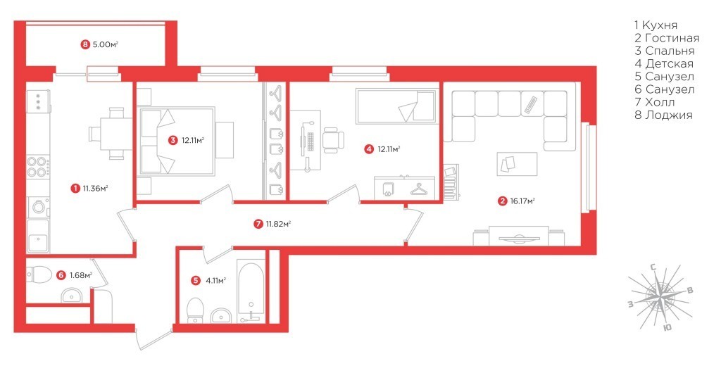Количество комнат: 3