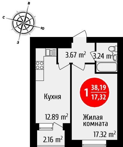 Комната 17,32 и просторная кухня 12,89 кв.м. с выходом на застекленную лоджию. Дом сдается в 4 квартале 2017 года с улучшенной получистовой отделкой (стяжка пола, оштукатуренные стены, электрическая и сантехническая разводка, унитаз, раковина). Все объекты всегда сдаются вовремя и раньше заявленных сроков. Дом переменной этажности: 6-9-12. В доме предусмотрено видеонаблюдение и консьерж.