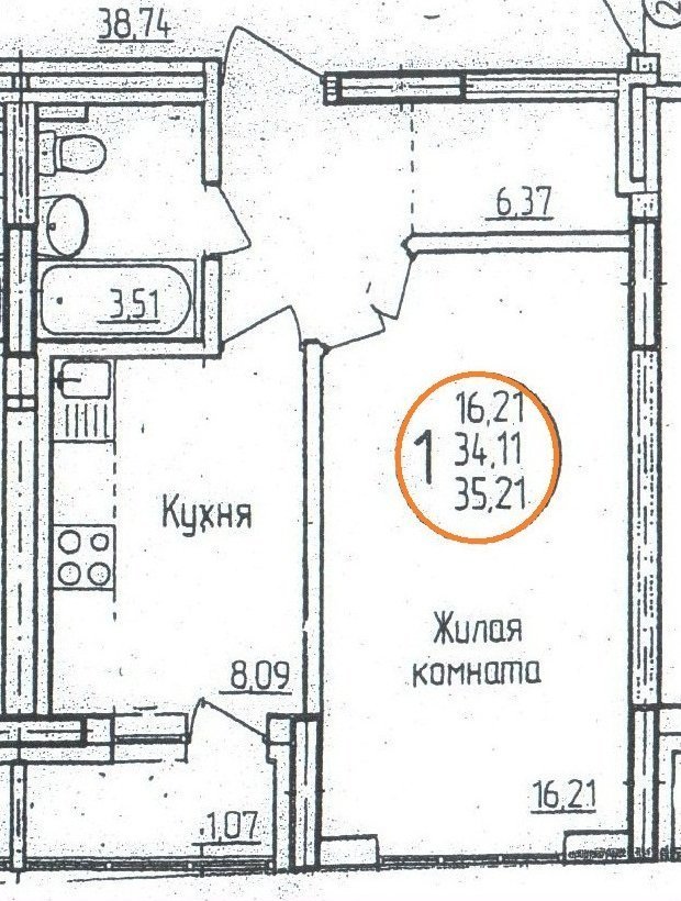 Площадь жилая: 16.21 м²