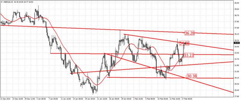 Нефть вплотную подошла к сопротивлению в районе 35 долларов за баррель, если он будет пройден, то следующий и последний уровень продаж будет 36.50.