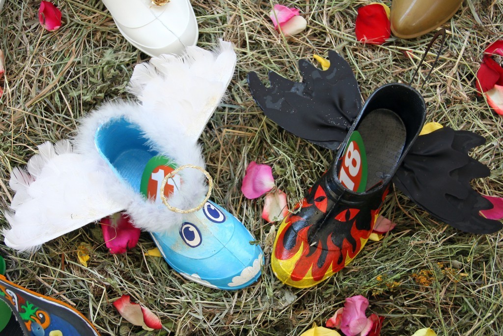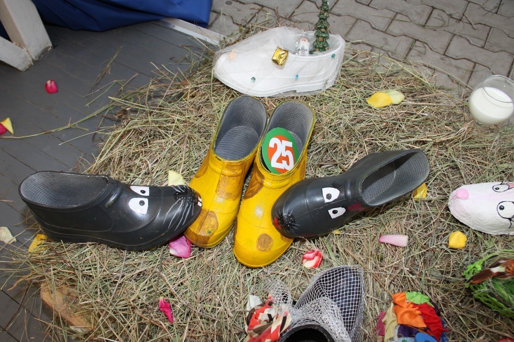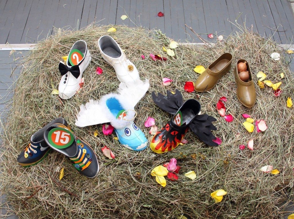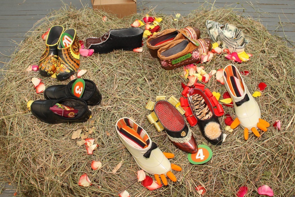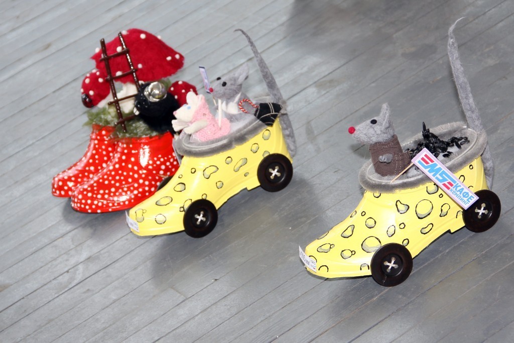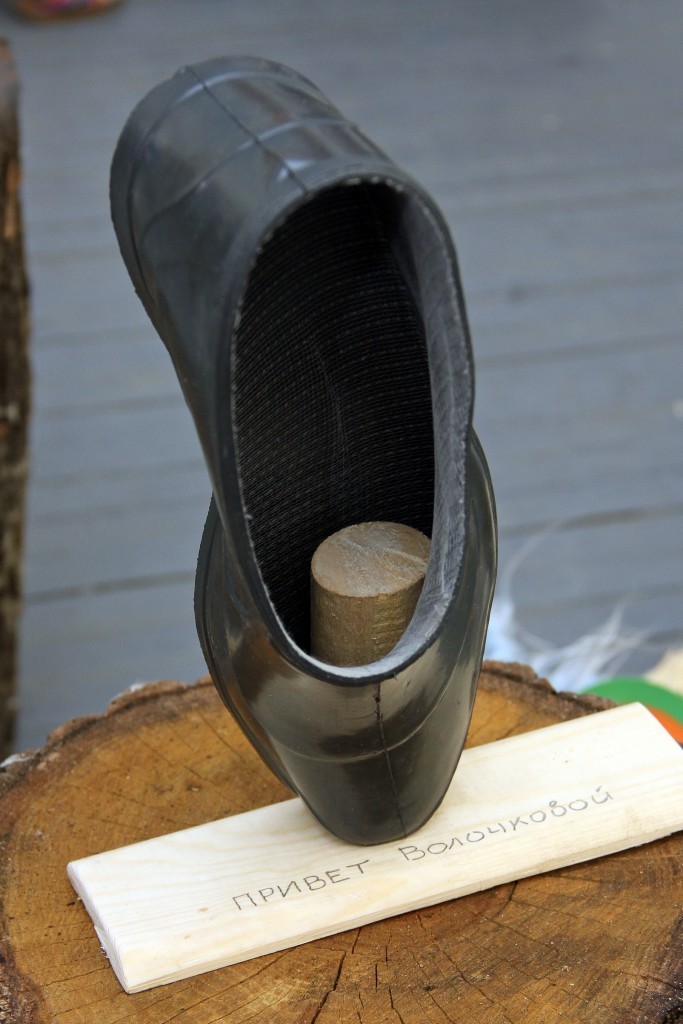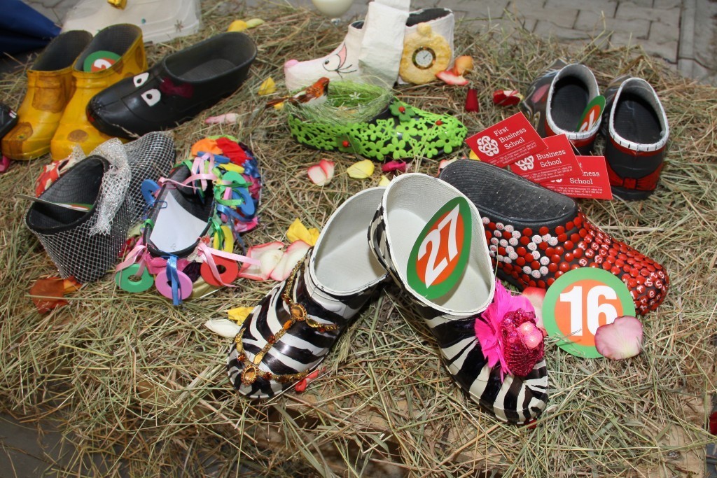 Например, целый воз жаренных «Деревенских» семечек, чай из самовара и блины, суши от ресторана доставки «Васаби» и вино от торгового дома «Фанагория». Для эстетов были сооружены оригинальные стога сена. Величие данных арт объектов покорило сердца ценителей искусства и превратилось в место отдыха для тех кто повторно бегал за штрафными. Кстати стога сена по великому замыслу олицетворяли выставочные стенды виновников торжества- галош. А их Было представлено огромное количество разнообразных моделей. Например Галоши экологичные- лесная поляна - настоящие галоши, настоящая травка, настоящая лейка для травки. Галоши – мифологичные, левая – ангел, правая – демон, изящные пляжные мокроступы, а-ля вечерние туфельки, конфетно-чупа-чупсовые и даже долларово-золотые.