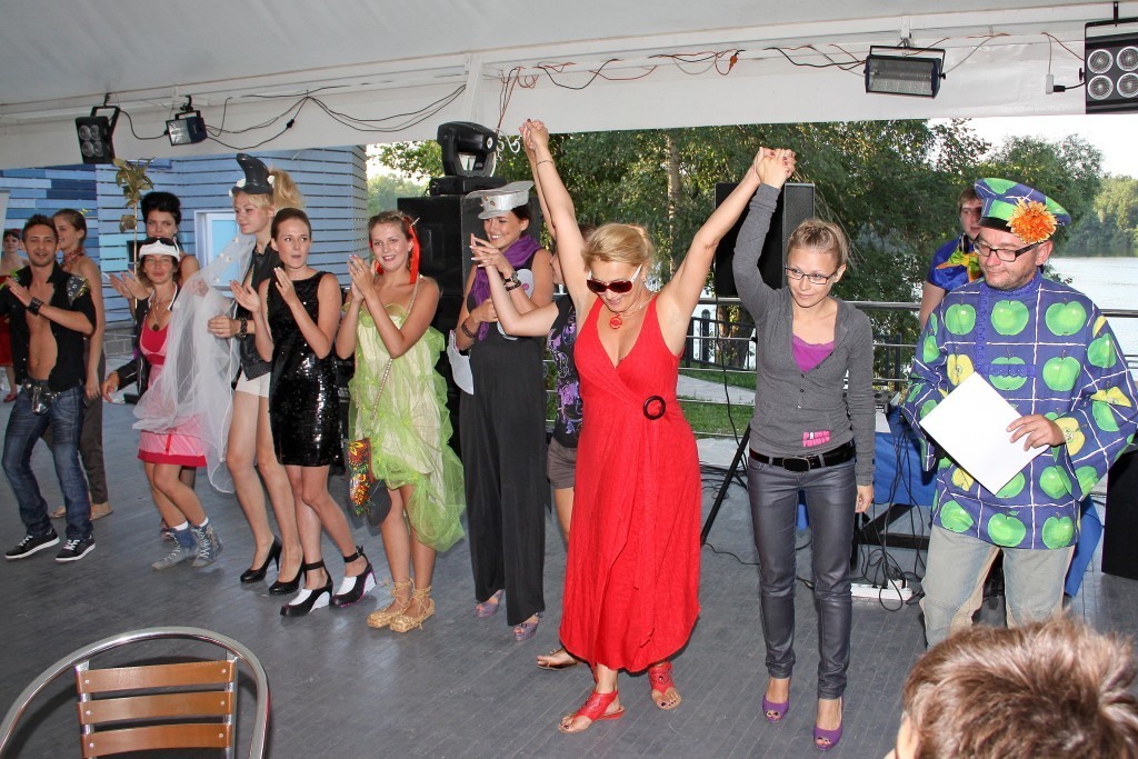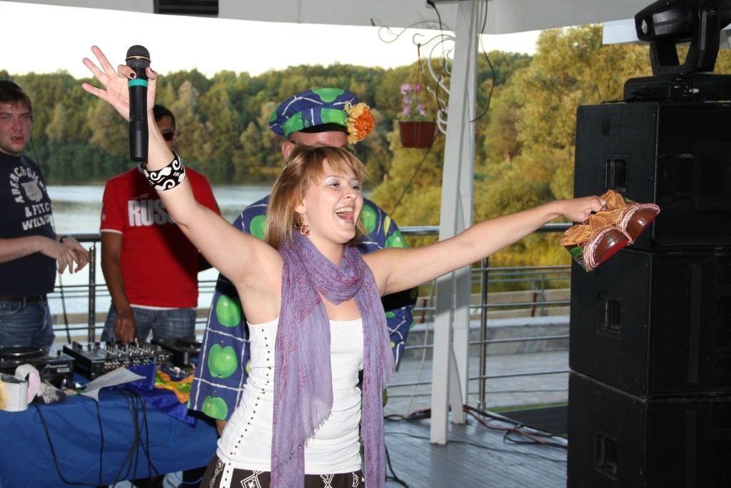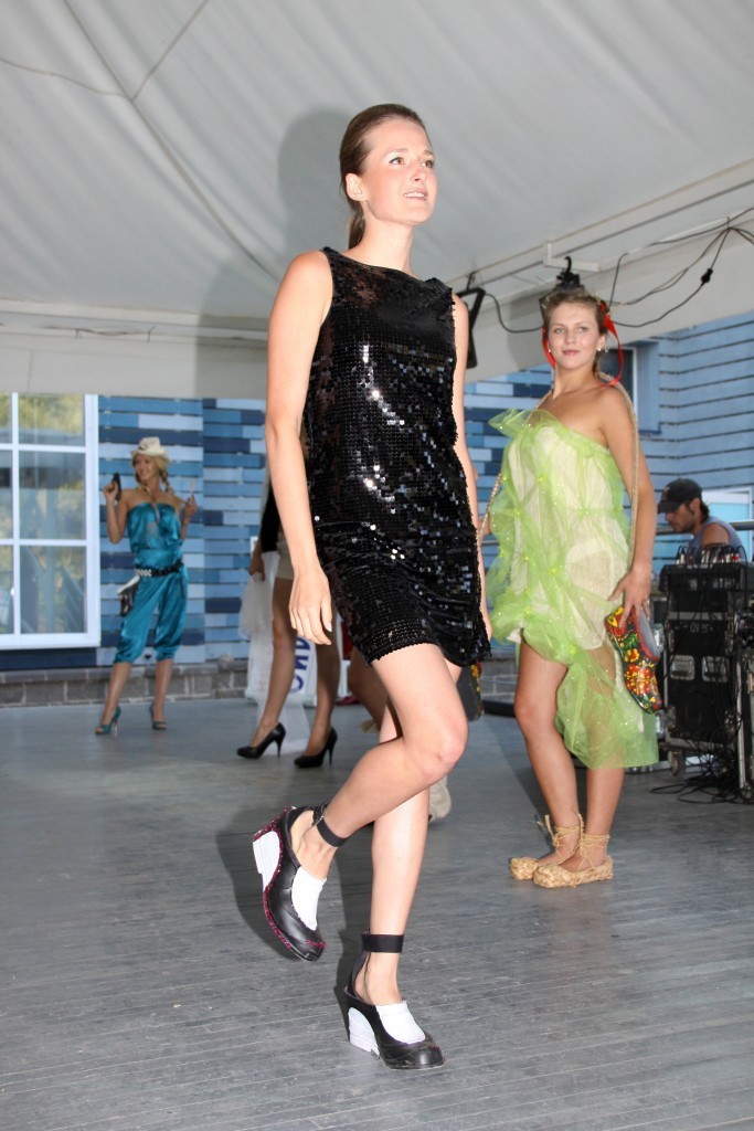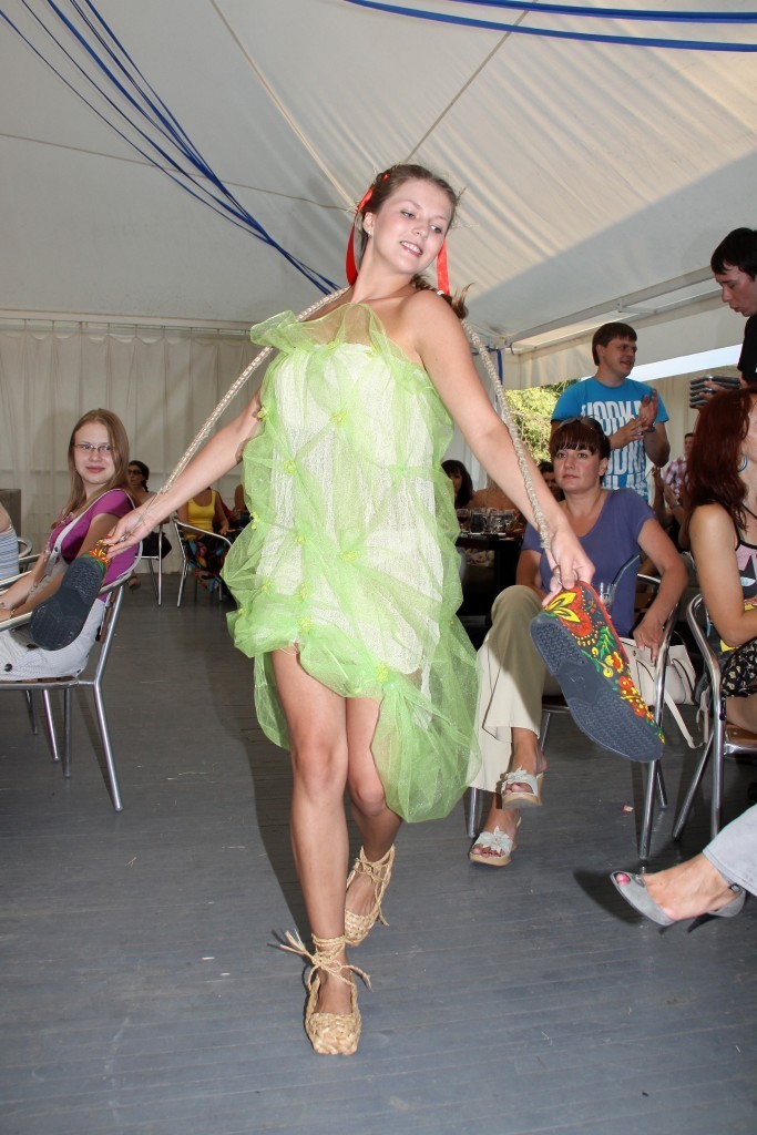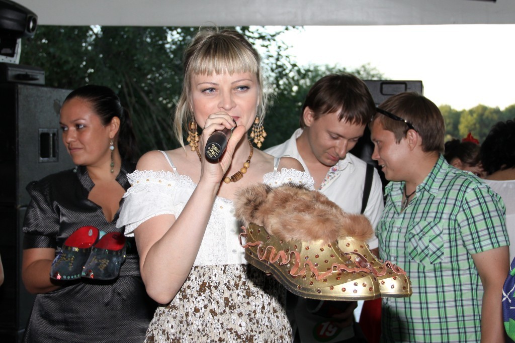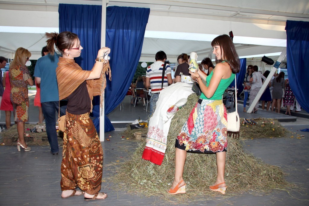 Первый дизайнерский показ галош «ГалоShow», прошел 1 июля в кафе-кемпинг «М5». Место было выбрано не случайно — вдали от городского шума и суеты, чтобы каждый гость забыл о насущных проблемах и окунулся в деревенскую романтику. На входе бокал молока с огурцом для рывка или штрафная стопочка водки «Белая Березка» - тем кто забыл одеться в стиле сельского жителя, и конечно разнообразные угощения.