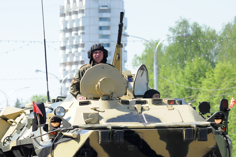 Военная техника и представители всех войск прошли по главной улице города, перед ветеранами и жителями Уфы.