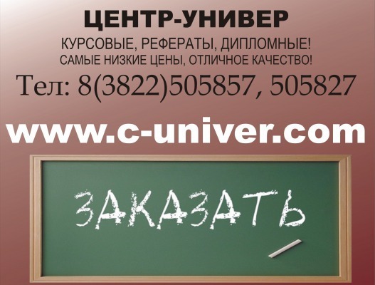 | Описание: | Курсовые, рефераты, дипломные и другие студенческие работы низкие цены, быстрое и качественное выполнение. "Центр-УНИВЕР", предоставляет услуги в написании научно-исследовательских работ любой сложности и тематики, помощь в написании, поиск информации, экономический анализ, составление бизнес-планов. Наши преимущества оперативность и качество! Выполняем срочные работы. Заключение договора. Возможность заказать и оплатить работы он-лайн! Выполняем абсолютно все технические и гуманитарные науки, на рынке данных услуг с 2003 года, наши авторы это профессионалы своего дела. НАШИ КОНТАКТЫ – "Центр-УНИВЕР"