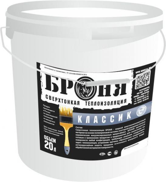 Жидкий сверхтонкий теплоизоляционный материал Броня Классик - базовый продукт, обладающий великолепной адгезией к любым поверхностям и уникальными теплофизическими свойствами. Эффективен в теплоизоляции фасадов зданий, крыш, внутренних стен, откосов окон, бетонных полов, трубопроводов горячего и холодного водоснабжения, паропроводов, воздуховодов для систем кондиционирования, систем охлаждения, различных емкостей и т.п. Эксплуатируется при температурах от -60 до +260 градусов. Срок службы материала от 15 лет. Легко и быстро наносится. |