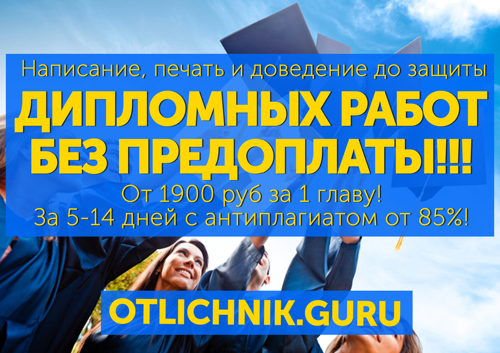 | Описание: | ДИПЛОМНАЯ РАБОТА? Полное сопровождение по цене от 5900 рублей, антиплагиат от 85%, срок 3-14 дней!