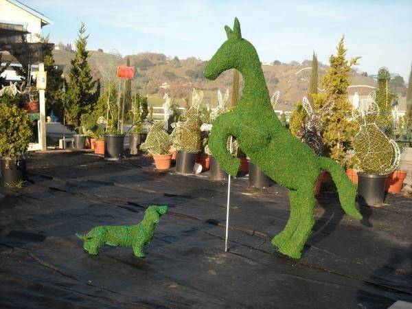 - Ландшафтный дизайн. Абстрактные фигуры или скульптуры животных могут оживить любой участок