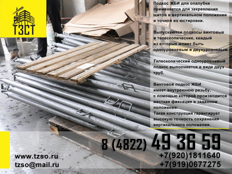 Подкос монтажный телескопический Подкос монтажный телескопический ПМТ-2500 диапазон регулирования 2500-3700 мм.
