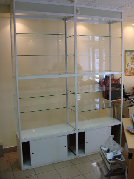 | Описание: | Стеллаж двойной, полки стеклянные,передние стекла распашные. В-2,5 Ш-40см, Д-2м в |