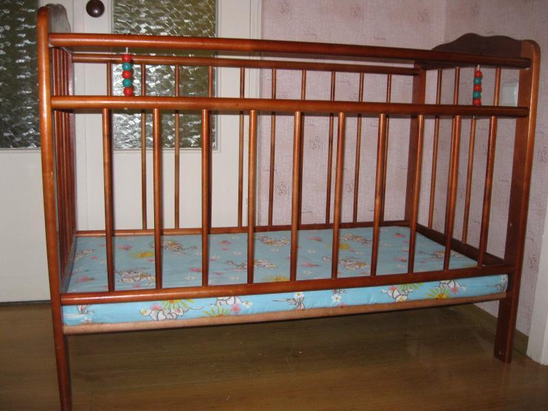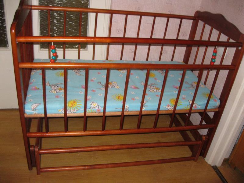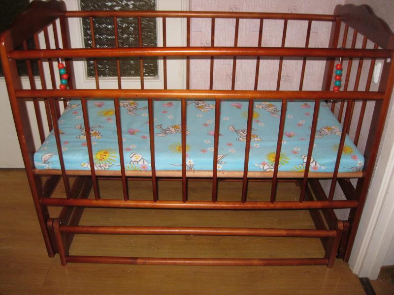 Продам деревянную кроватку-маятник темно коричневого цвета.