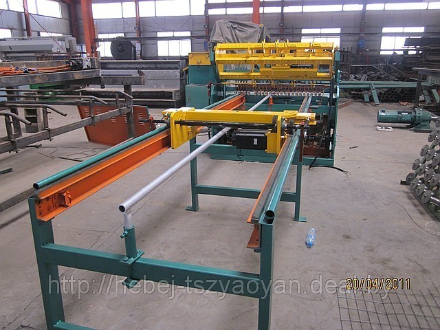Станок работает от электродвигателя , регурирует сварное давление легко и удобно, имеет загрузочный желоб, который передается от шагового электродвигателя, свободно регурирует размер ячейки в области, продольная проволока подавается и сетка вытягивается при помощи шагового электродвигателя. Продольно и поперечно подаваемая проволока предварительно выпрямляется и нарезается.