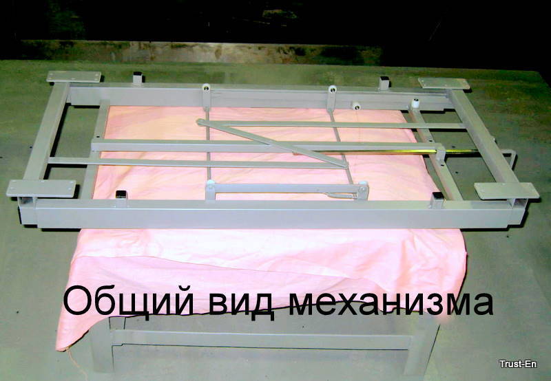 | Описание: | Компания Траст-Эн, ЗАО производит механизмы для раздвижных столов. Механизм обеспечивает синхронное раздвижение крыльев столешницы и автоматический подъем и опускание вставки. Толщина столешницы: 19-26мм. Представленный на фотографиях типоразмер механизма предназначен для раздвижных столов на двух массивных опорах (возможна модификация для стола на четырех массивных опорах).