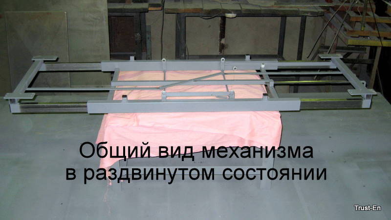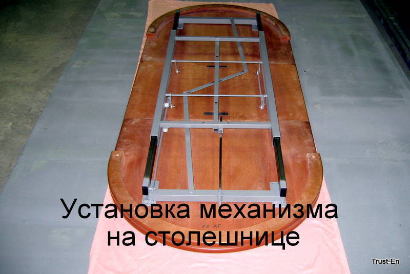 | Описание: | Компания Траст-Эн, ЗАО производит механизмы для раздвижных столов. Механизм обеспечивает синхронное раздвижение крыльев столешницы и автоматический подъем и опускание вставки. Толщина столешницы: 19-26мм. Представленный на фотографиях типоразмер механизма предназначен для раздвижных столов на двух массивных опорах (возможна модификация для стола на четырех массивных опорах).