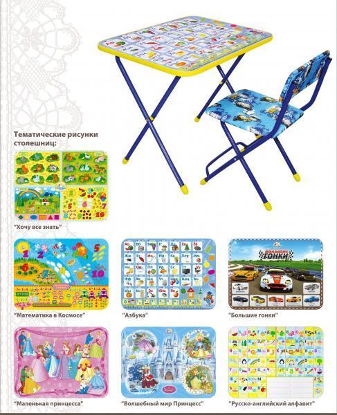 Складной комплект детской мебели «Алина» предназначен для детей от 3-7 лет. На металлическом каркасе. В комплект входит стол и стул. Столешница изготовлена из материала ЛДСП. Стул с пластмассовым сиденьем. Легко трансформируется!